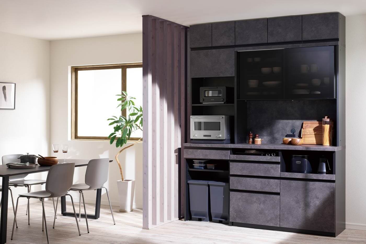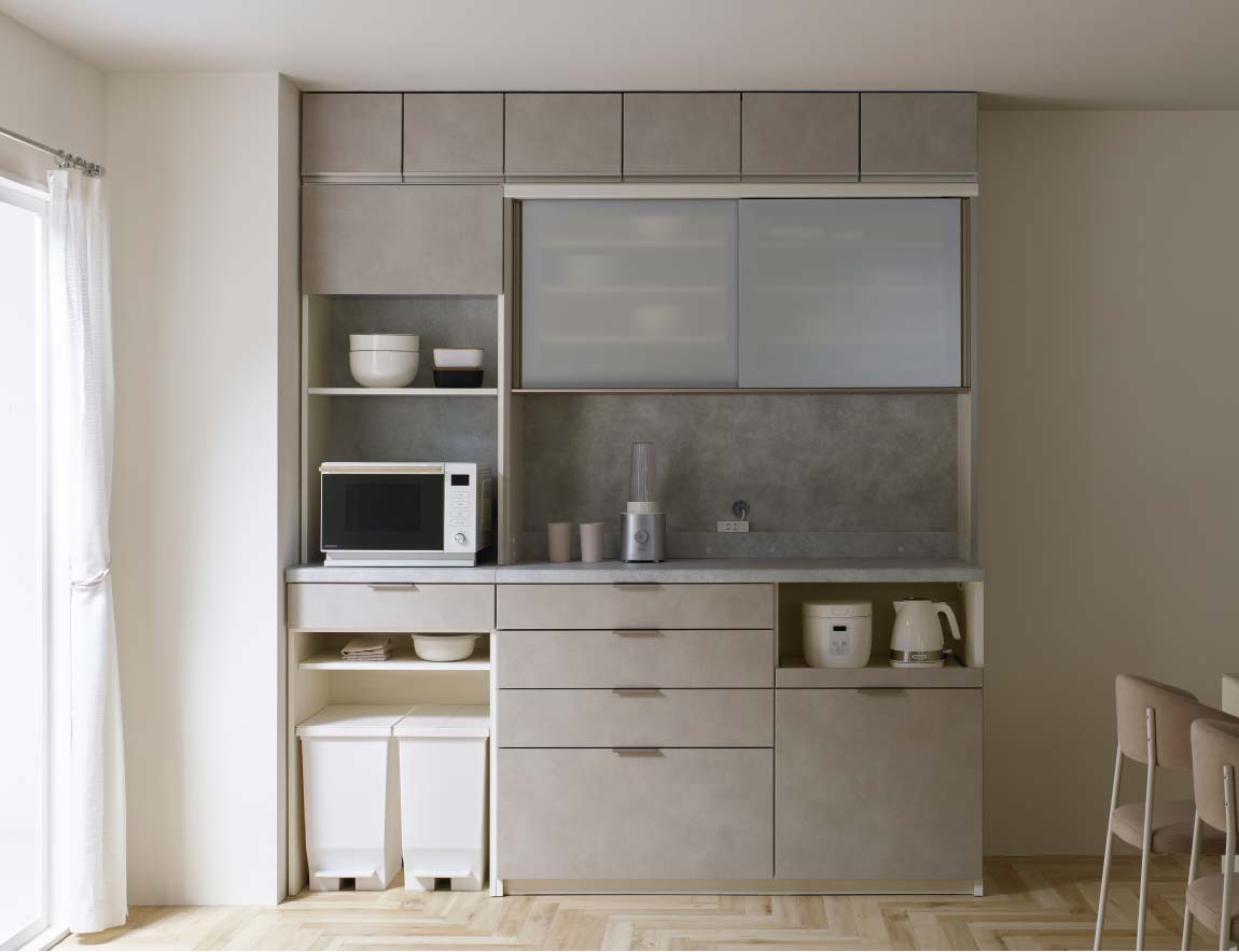 またRU食器棚に新しいカウンター高さと上台高さを追加し、RU/RLシリーズとして、より幅広いニーズにお応えできるようになりました。