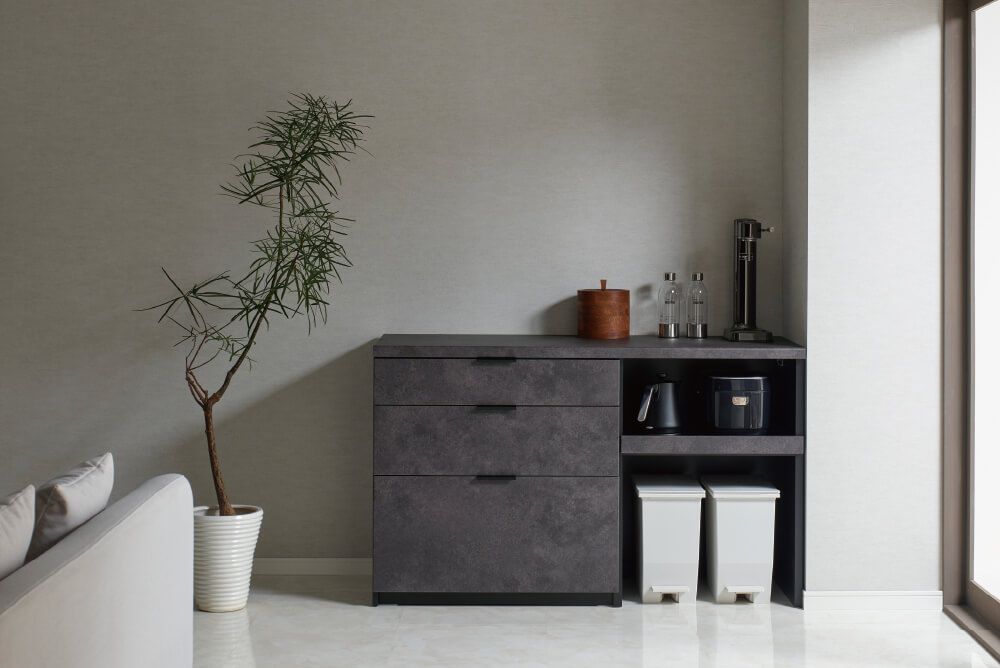 下台の収納タイプも引出とオープンの2タイプがありますので、使用用途に合わせてお選びください。
