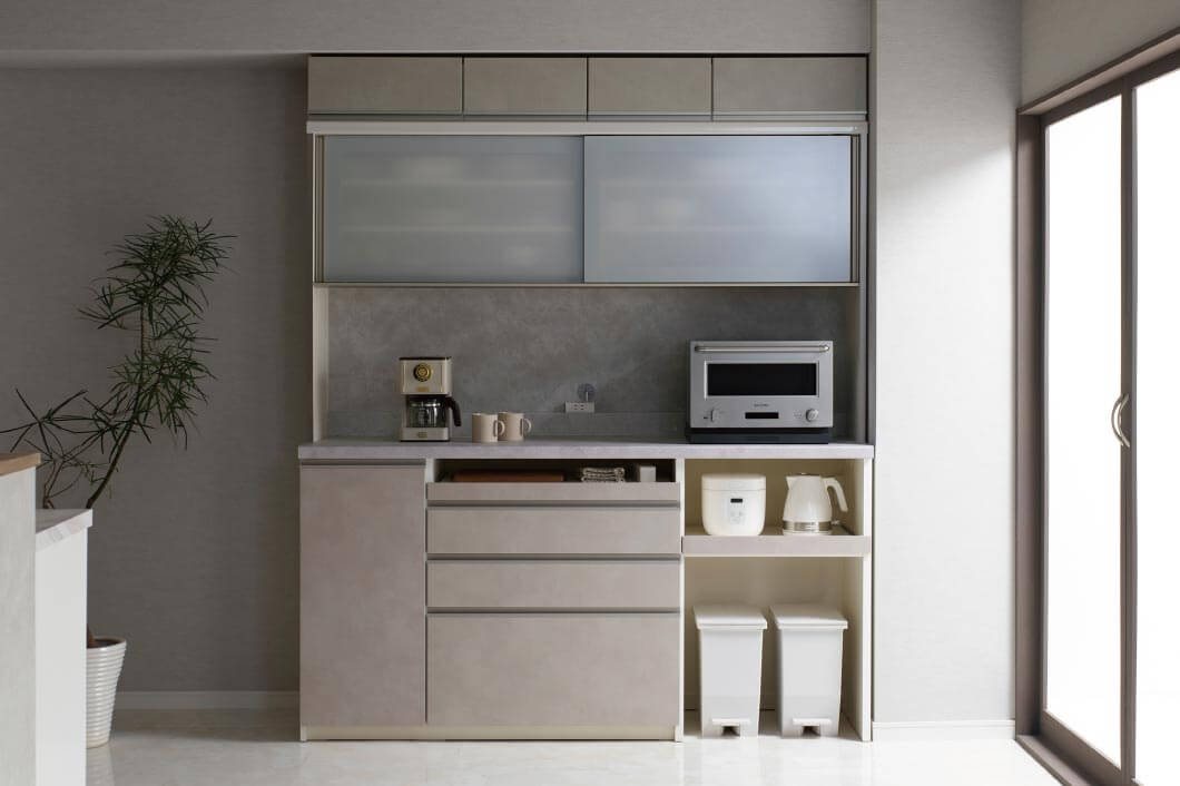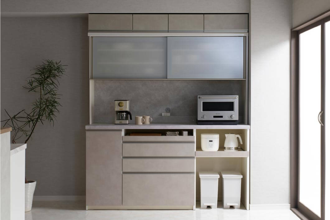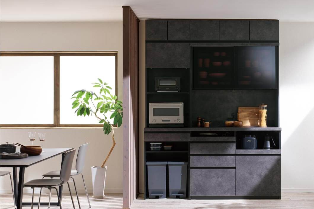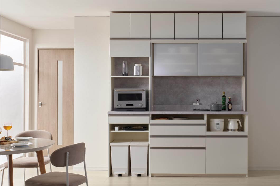 暮らしに合わせて選べる自由さと、日常を快適にする工夫をひとつに。毎日に寄り添う食器棚。