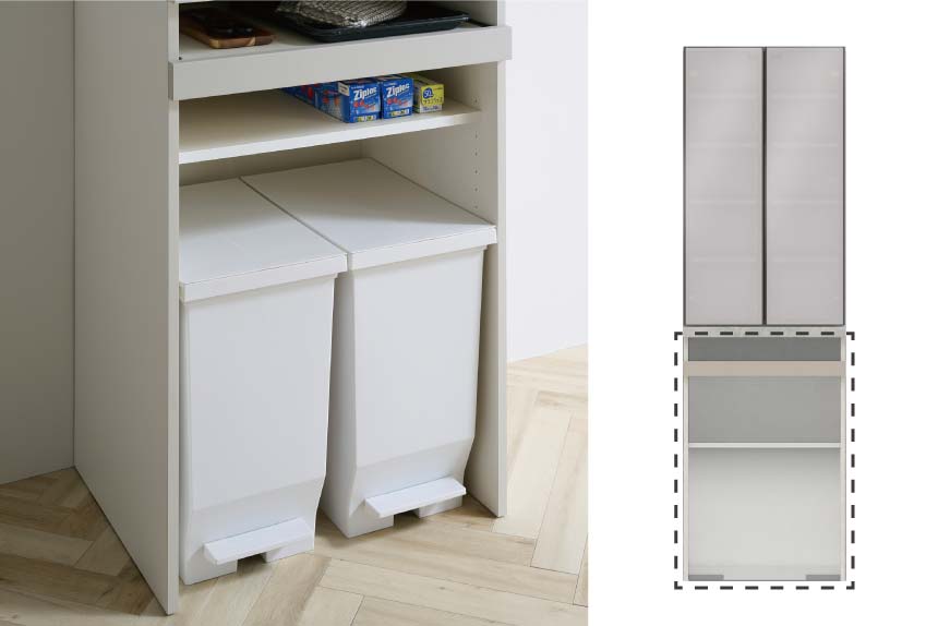 - 深引き出しに収まるごみ箱です。