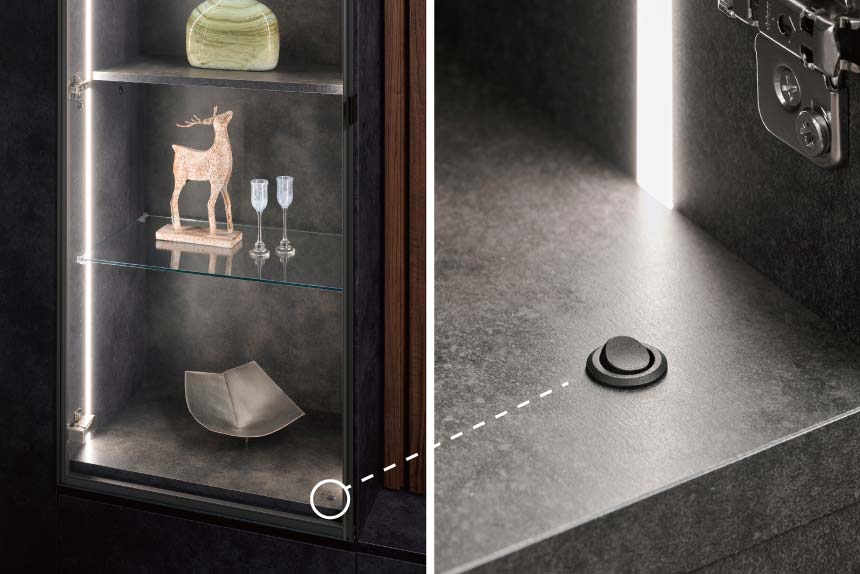 - 大切なコレクションをアートのようにディスプレイできます。収納するものにあわせて高さを変えられる、可動ガラス棚板付きです。