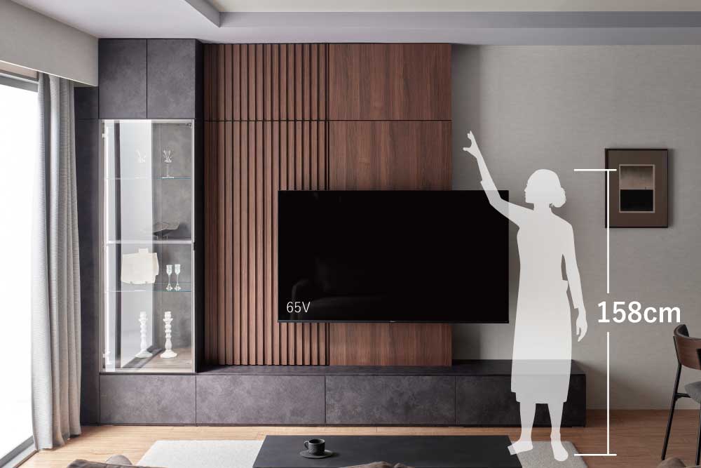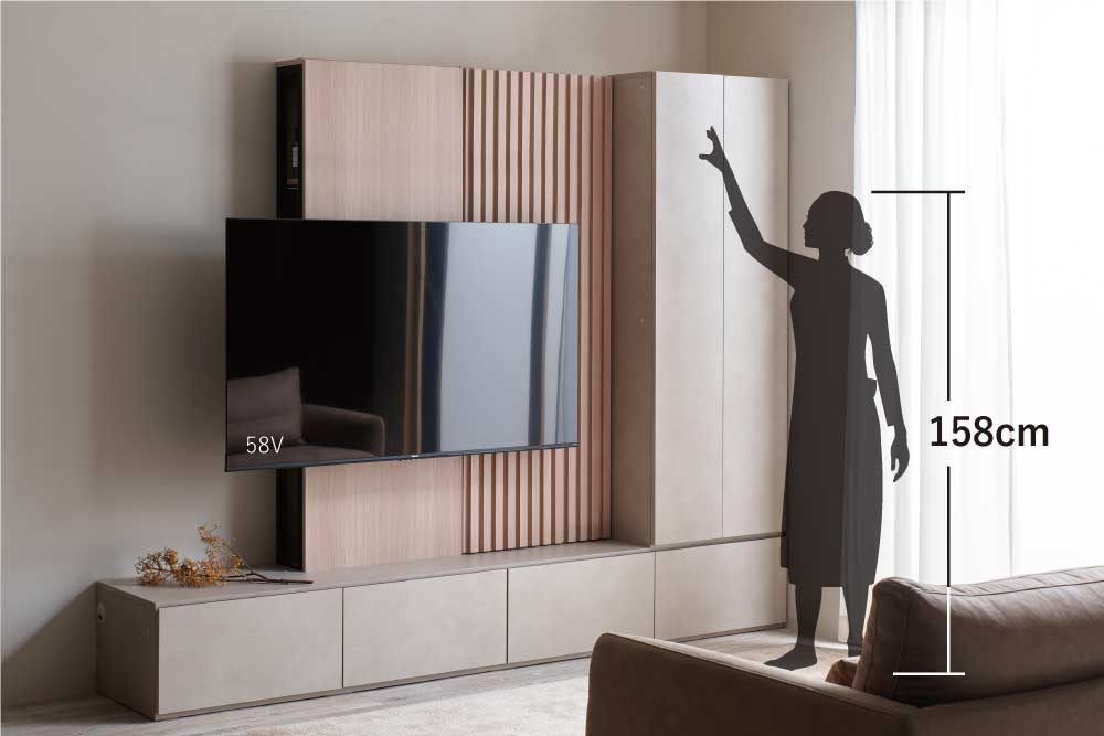 使いやすさを忍ばせた、こだわりの横顔。テレビ背面にそっと隠されたスマート収納。