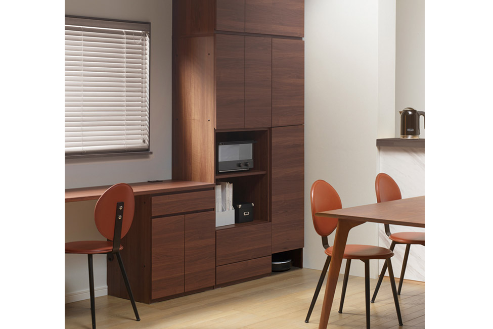 リビングやダイニング、書斎にも、幅広く自由に空間をアレンジできる収納家具シリーズ。